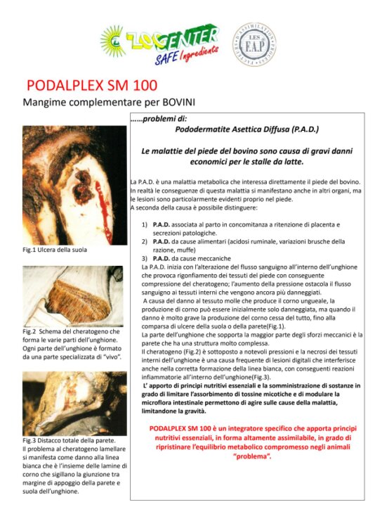PODALPLEX SM 100 è un integratore specifico che apporta principi nutritivi essenziali, in forma altamente assimilabile, in grado di ripristinare l’equilibrio metabolico compromesso negli animali